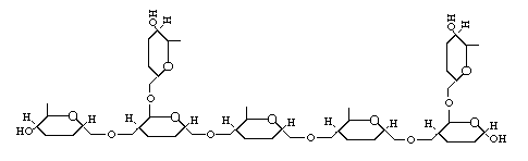 Glycogen is an animal polymer very similar to starch. Glucose units are also joined in 1,4 linkages, but in addition some side chains are added to the major chain by 1,6 linkages.