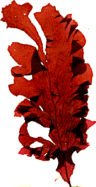 The above left image of a piece of the red alga Erythrophyllum delesseriodes is from http://www.sonoma.edu/biology/algae/Erythrophyllum.html. The image on the right is Microcladia coulteri from http://www.sonoma.edu/biology/algae/Microcladia.html.