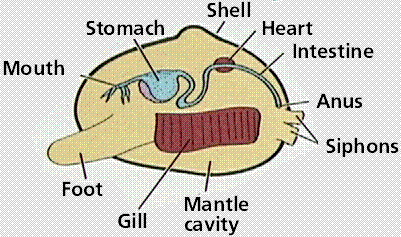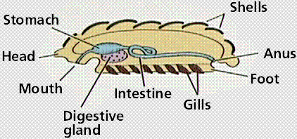 Anatomy of a bivalve. Image from W.H. Freeman and Sinauer Associates, used by permission.