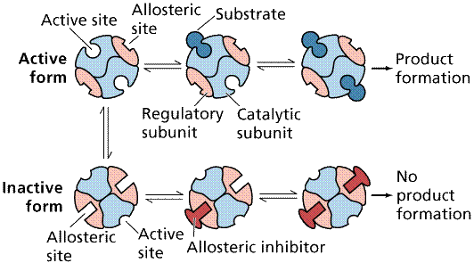 Action of an allosteric inhibitor as a negative control on the action of an enzyme. Image from W.H. Freeman and Sinauer Associates, used by permission.