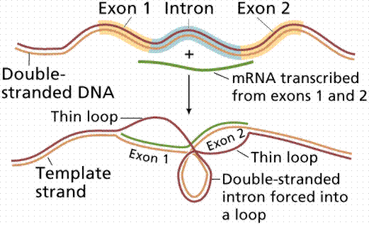 Most, but not all structural eukaryote genes contain introns. Although transcribed, these introns are excised (cut out) before translation (a seemingly energy inefficient process). The number of introns varies with the particular gene, even occurring in tRNAs, rRNAs and viral genes! Generally the more complex and recently evolved the organism, the more numerous and larger the introns. Which came first: continuous genes lacking introns or interrupted genes containing introns? Introns have been hypothesized to promote genetic recombination (via crossing-over), thus speeding up the evolution of new proteins. Exons are also thought to code for different functional regions of proteins.