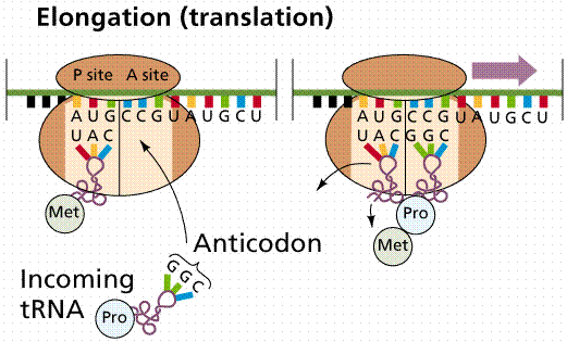 elongation During protein synthesis, the growth of the polypeptide chain through the addition of amino acids; the second step in translation. PICTURE 1 | PICTURE 2